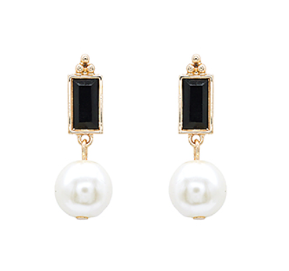 Add a touch of playful elegance with these black and pearl drop earrings, featuring delicate gold details that shimmer with every move. Perfect for brightening up any outfit, these earrings bring a chic contrast and a hint of sophistication to your look.