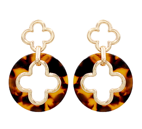 Add a touch of luck and style with these playful Clover Tortise and Gold Earrings. The warm tortoise pattern blends effortlessly with gleaming gold accents, creating a fun yet chic accessory perfect for brightening any outfit. Lightweight and eye-catching, they bring a fresh charm to your everyday look or special occasions.