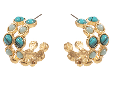 Gold hoops accented with turquoise and aqua stones, bringing a touch of seaside elegance. đâš