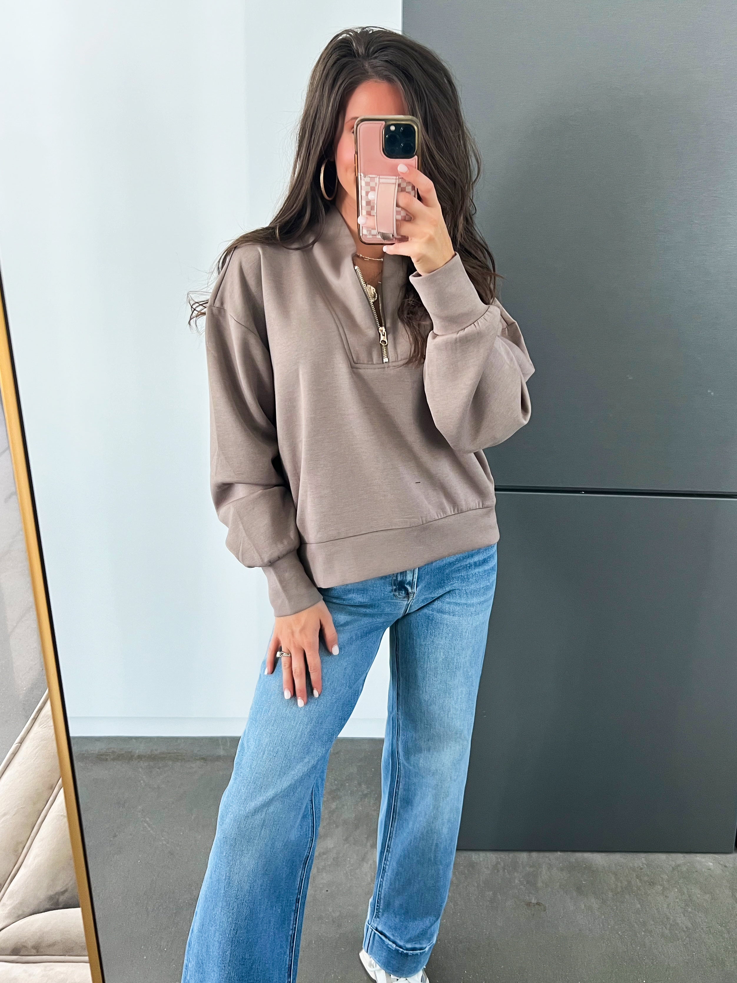 Chic Comfort Scuba Zip Pullover – Cocoa & Black