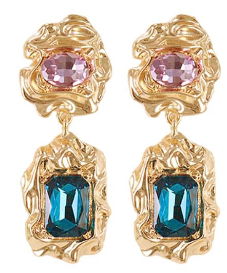 Add a splash of color and sparkle to your look with these playful Blue and Lavender Gemstone Earrings. Set with vibrant gemstones and highlighted by delicate gold accents, they bring a cheerful charm that brightens any outfit. Perfect for adding a pop of fun to your day or night style!