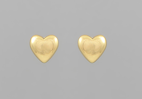 Add a touch of love to your look with these charming Gold Heart Studs. Perfectly petite and shining with warm gold tones, they effortlessly brighten any outfit. Great for everyday wear or a special occasion.