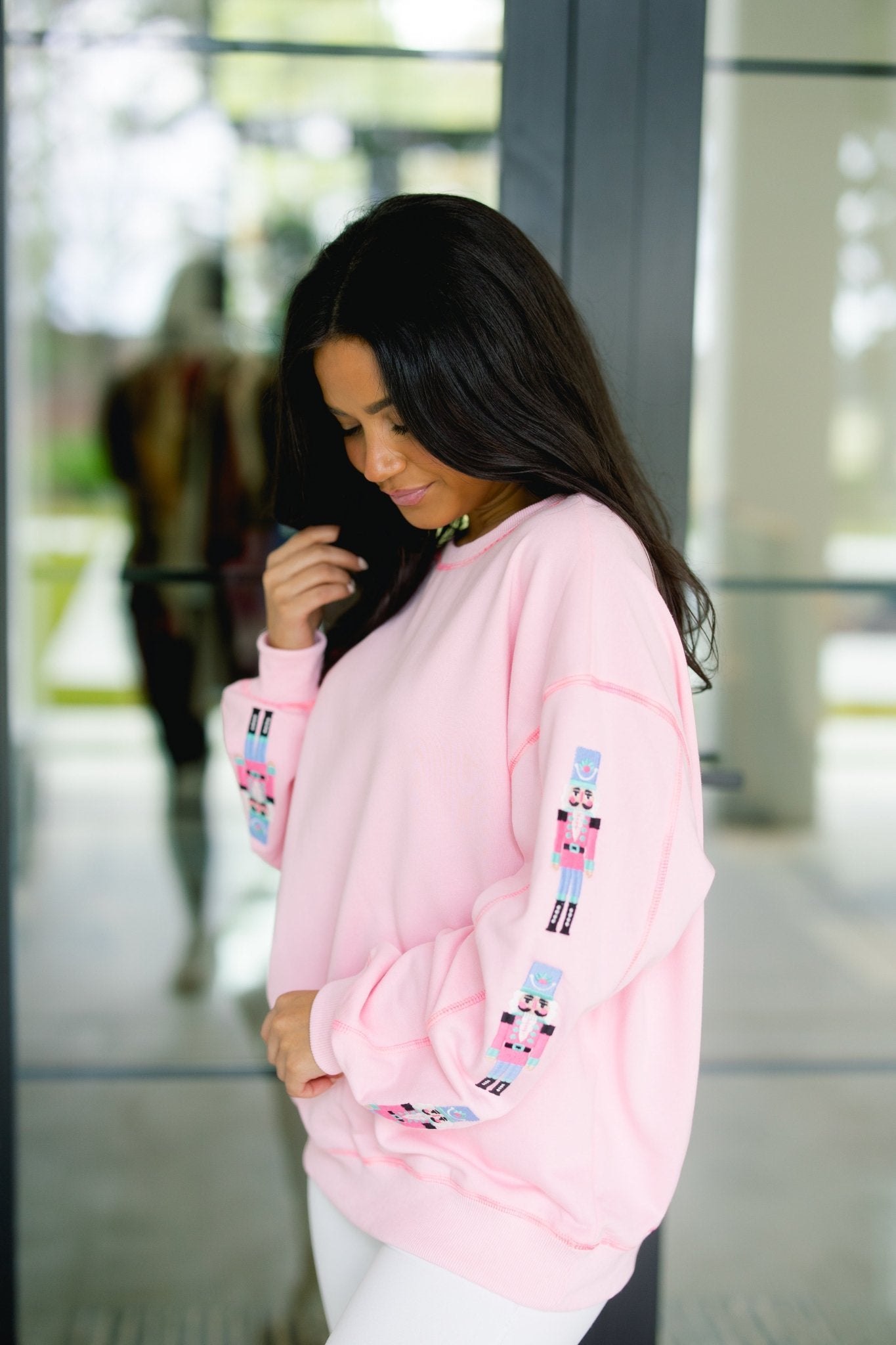 Our Girly Pink Nutcracker Sweater brings a playful twist to classic Christmas style! Crafted in a soft blush-pink hue, this cozy sweatshirt features embroidered nutcracker designs along the sleeve for the perfect dose of sparkle and whimsy. Whether you’re wrapping gifts, sipping cocoa, or heading to a holiday party, this cheerful piece adds a little extra magic to your winter wardrobe. 100% Cotton.Why You’ll Love It