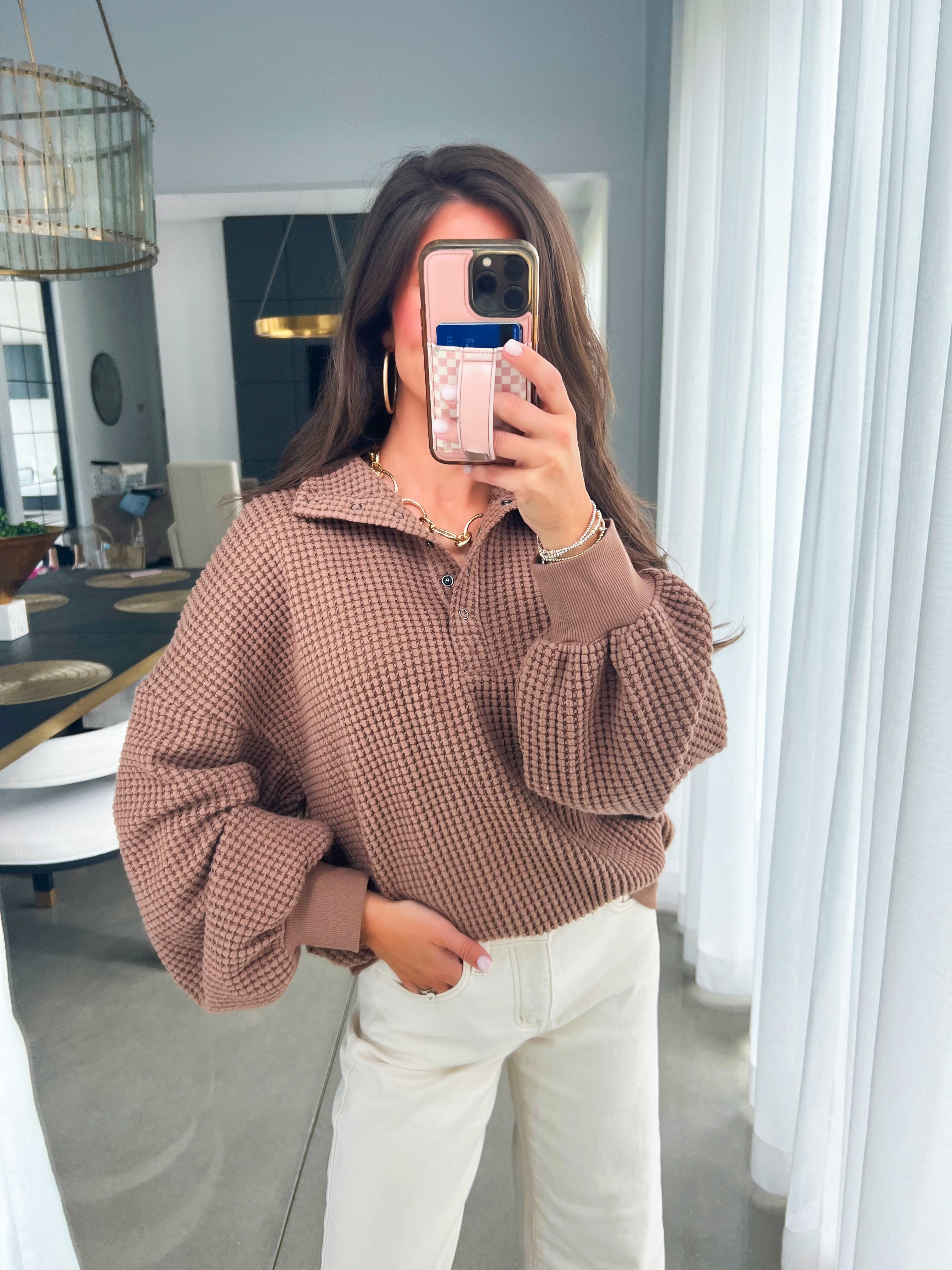 ✨ A waffle knit pullover that’s as comfy as it is effortlessly stylish.