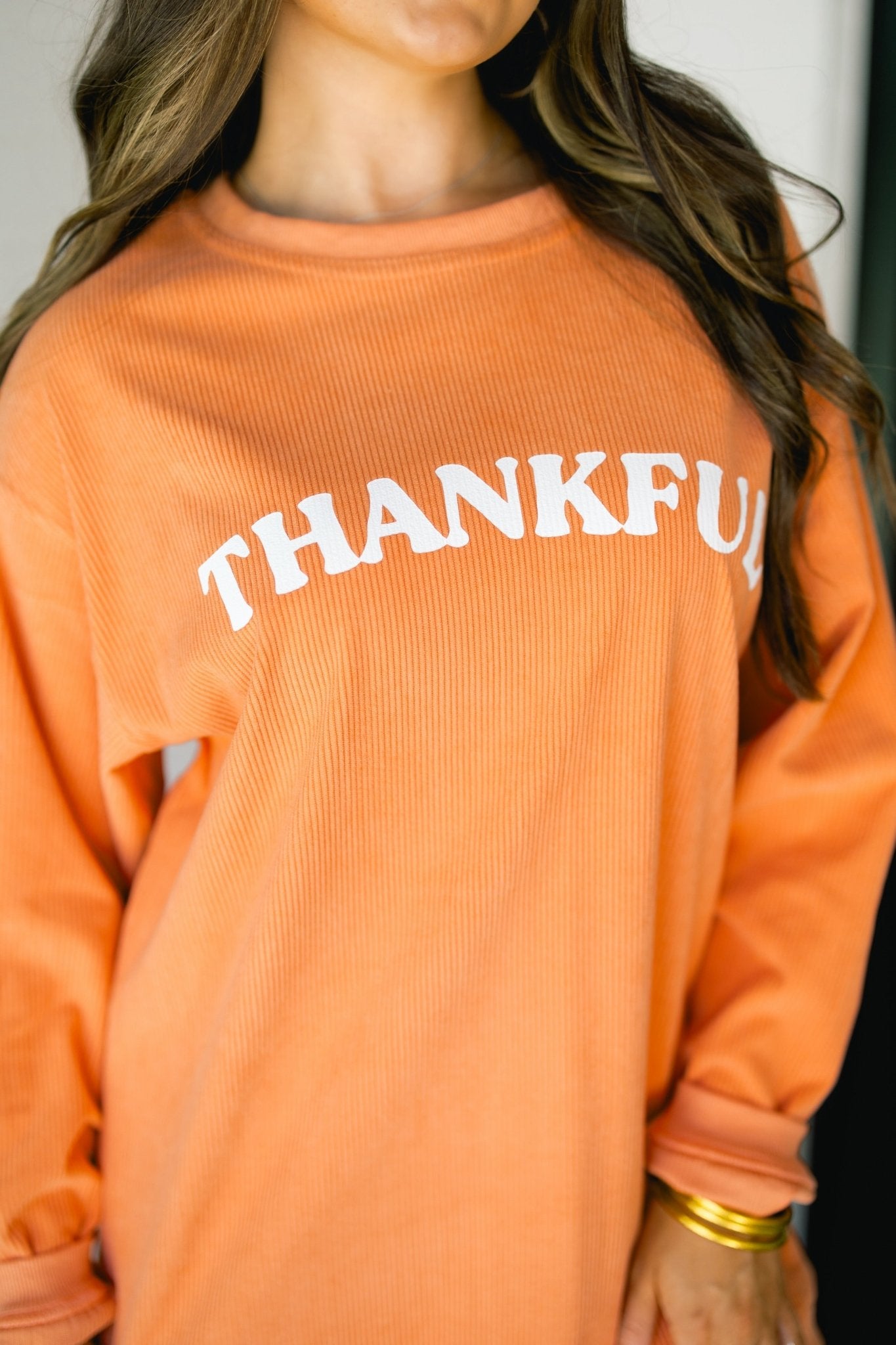 Wrap yourself in warmth and positivity with the Thankful Corded Top — a soft, oversized sweatshirt that perfectly captures the cozy spirit of the season. Featuring a textured corded fabric in a rich pumpkin hue and bold white “THANKFUL” lettering across the chest, this top is both stylish and meaningful. It’s the ideal fall staple for layering, lounging, or sharing your gratitude in style! 100% Polyester.