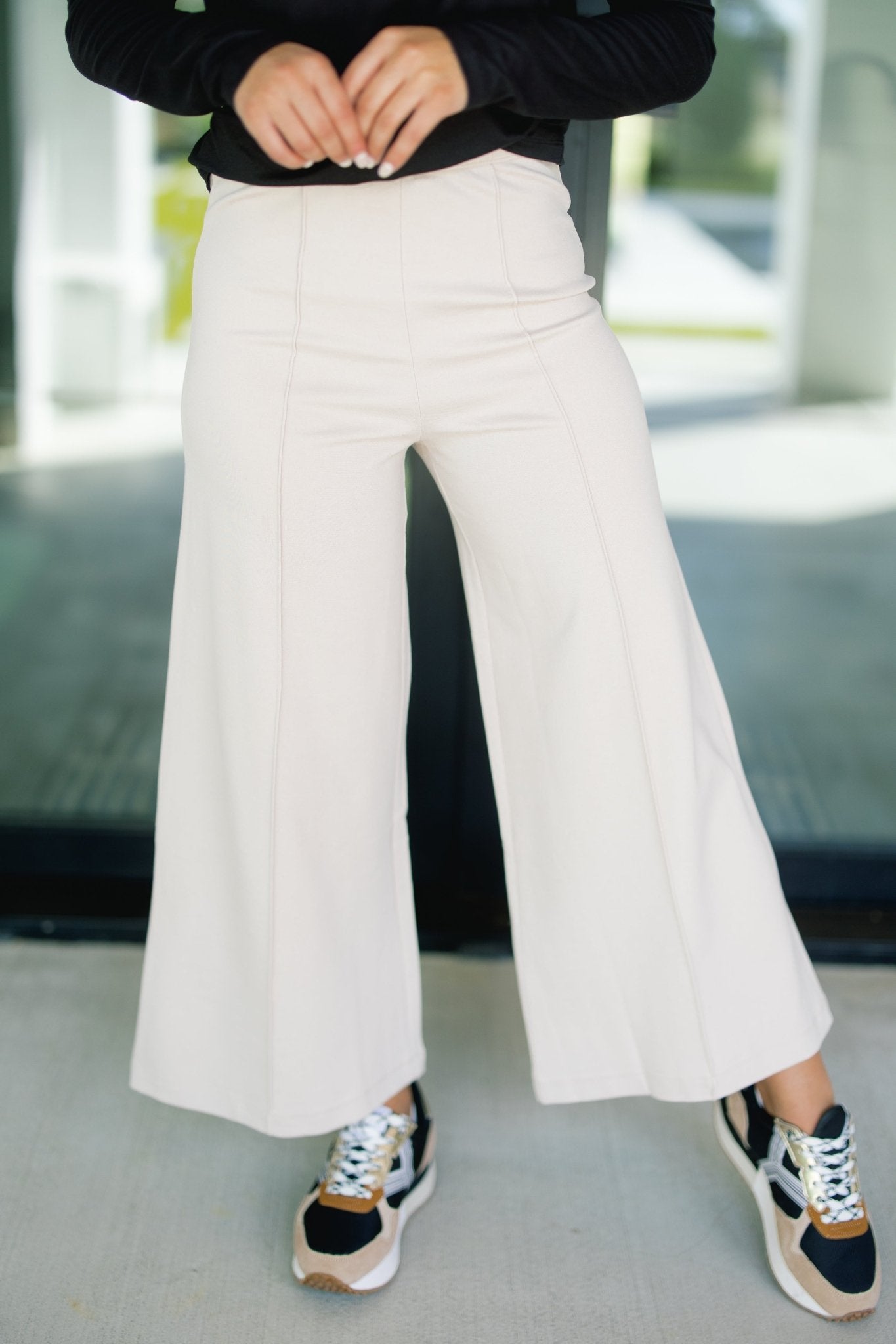 Classic, versatile, and oh-so-flattering — the Time Will Tell Beige Pants are a wardrobe essential. Designed with a wide-leg silhouette and seam detailing down the front, these pants create a sleek, elongating look that’s effortlessly chic. The high-waisted fit makes them perfect for pairing with cropped tops, tucked-in blouses, or cozy sweaters. 68% Rayon, 28% Nylon, 4% Spandex.