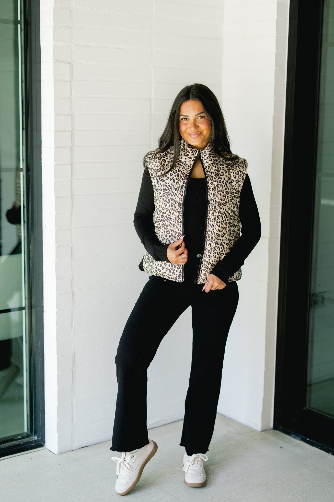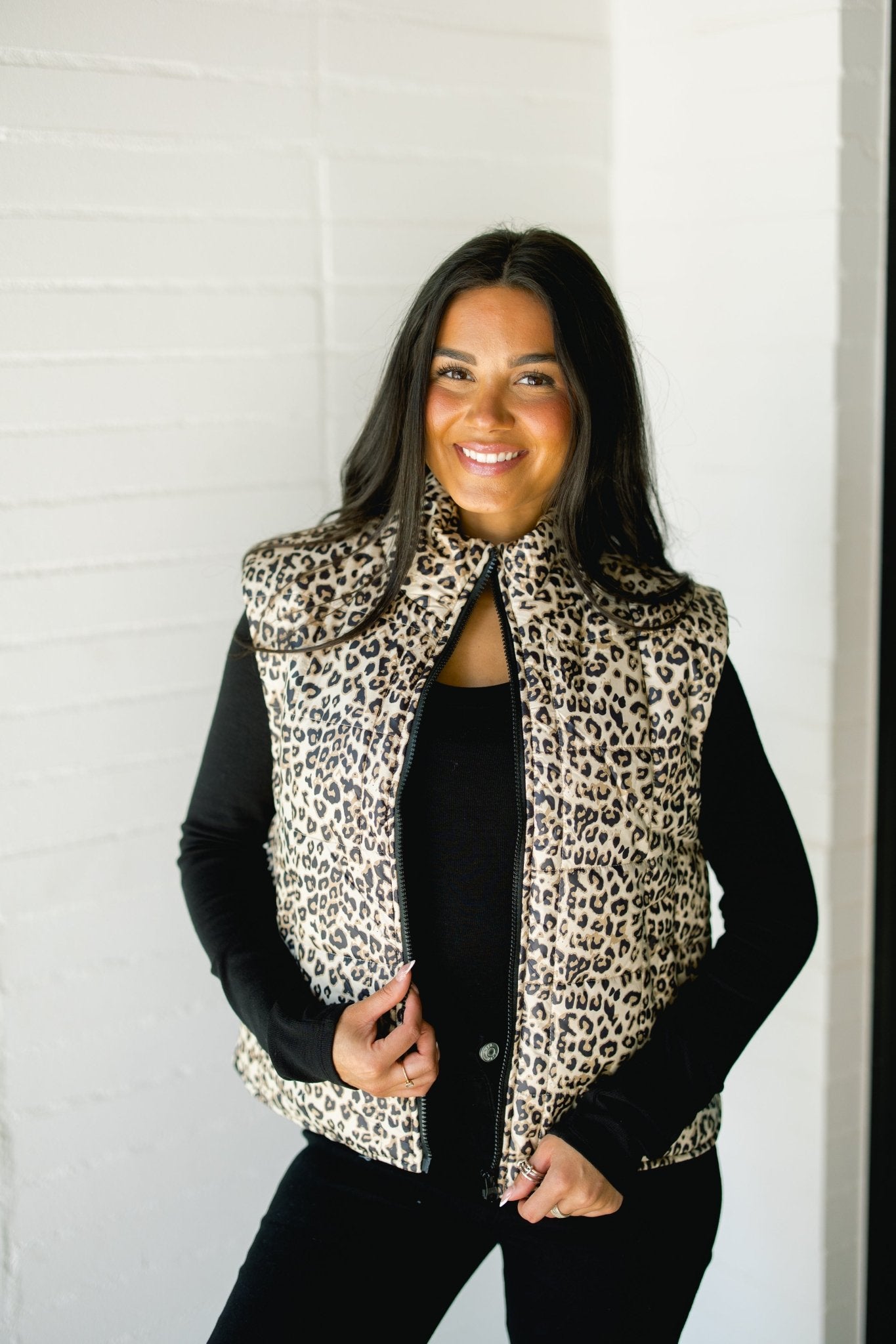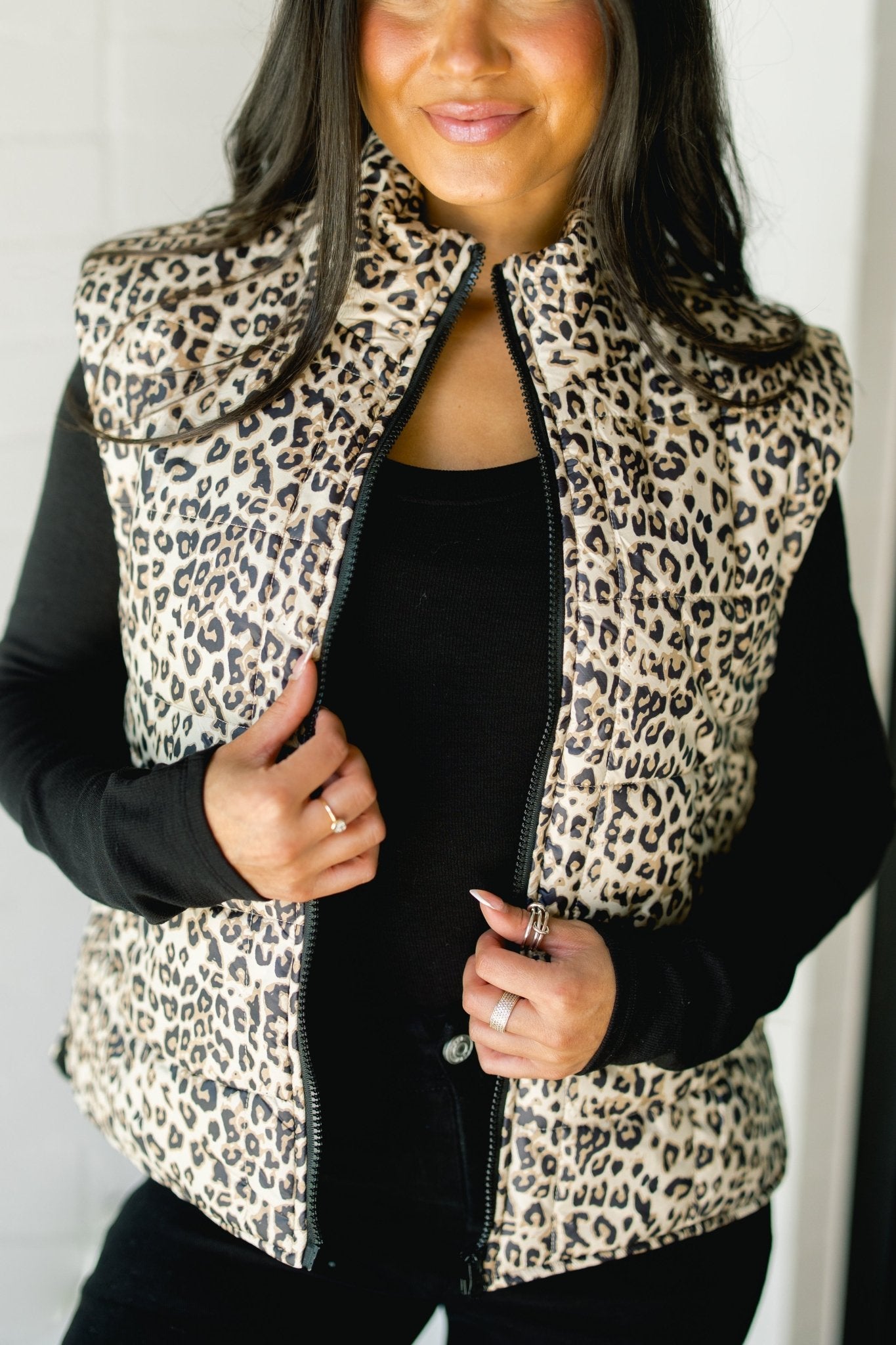 Wild One Puffer Vest – Leopard Print Quilted Zip-Up Vest – Instyle Boutique