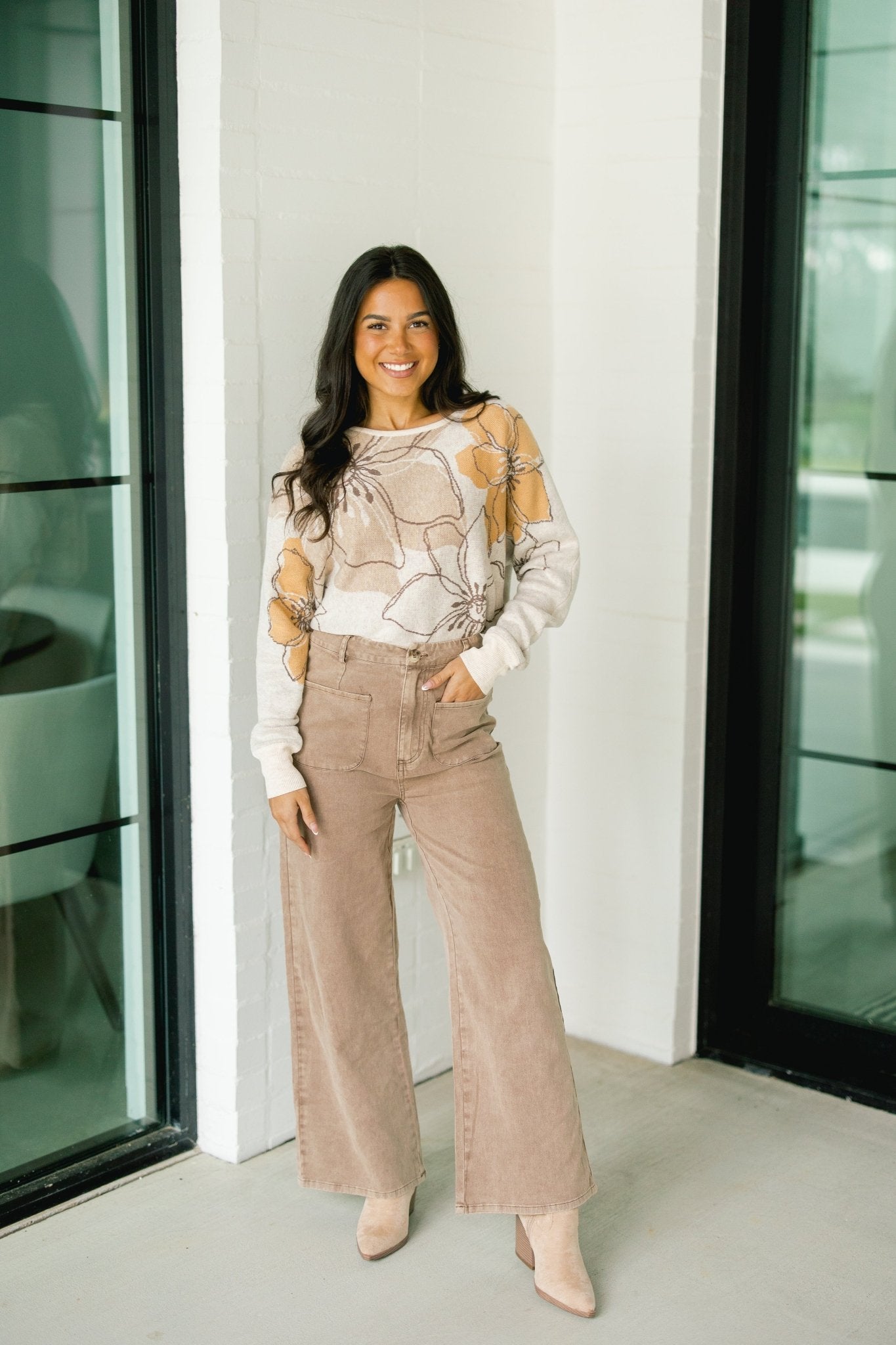 The Neutral Blooms Sweater brings together cozy texture and timeless florals for a look that’s equal parts relaxed and refined!