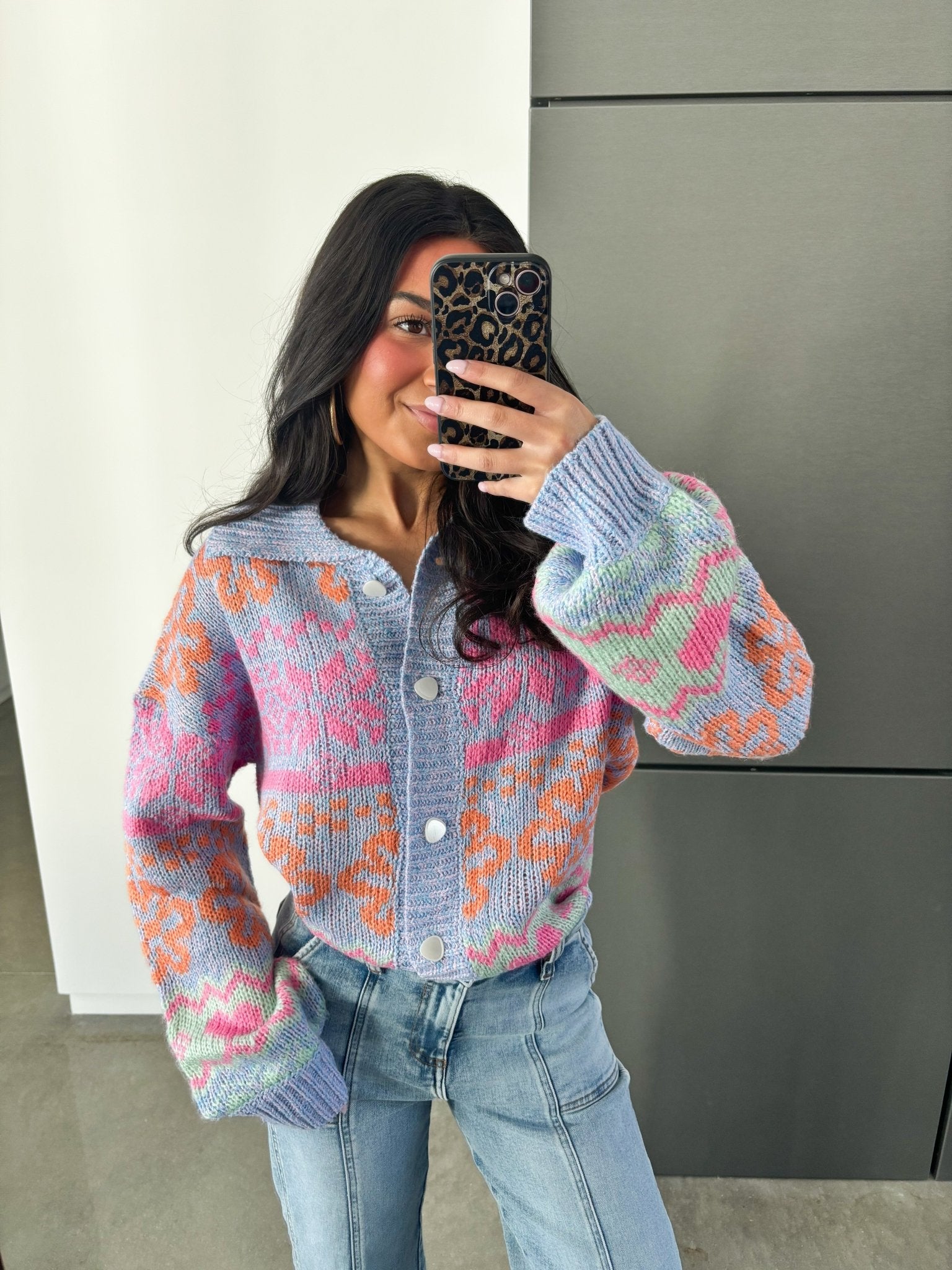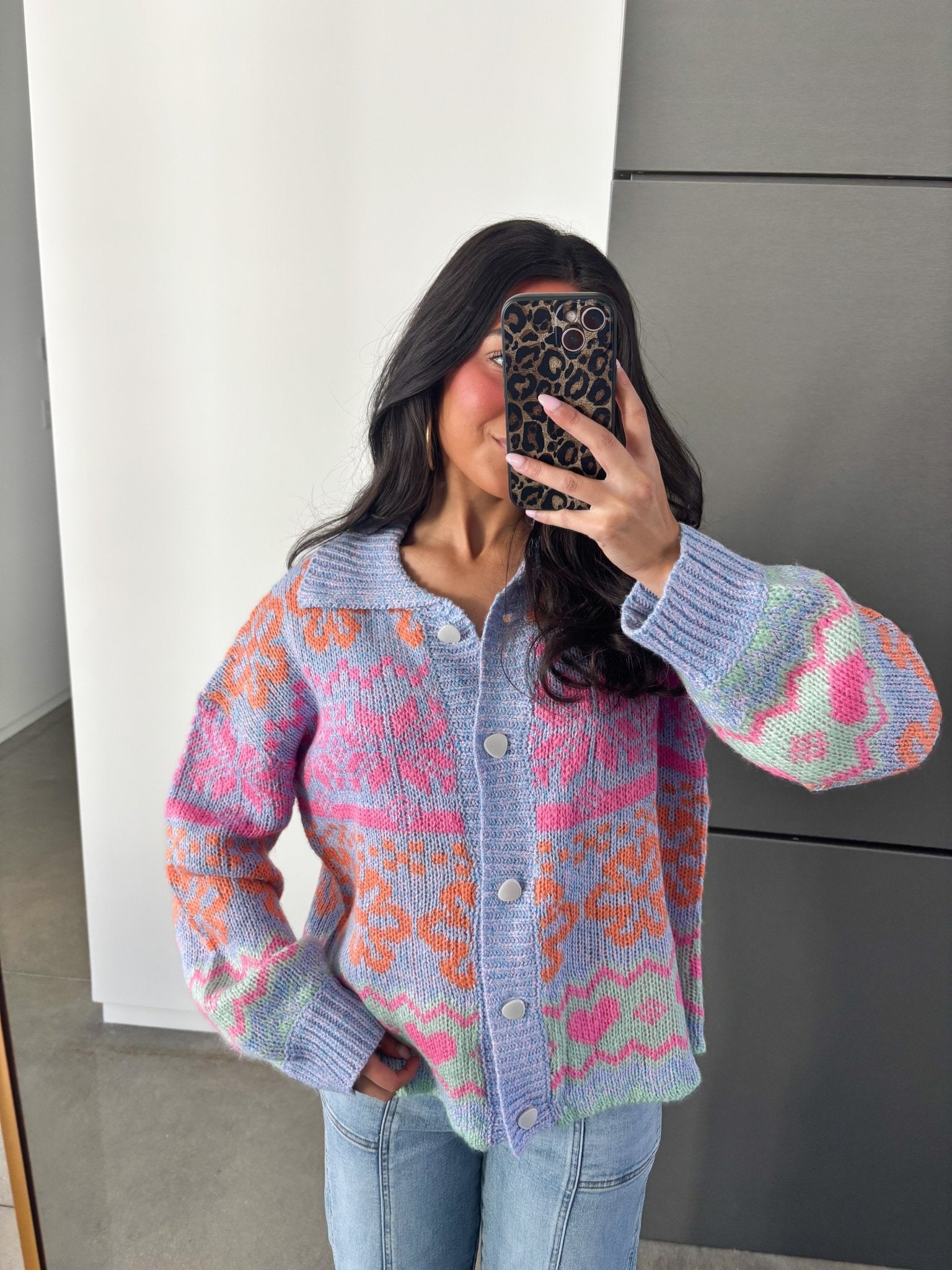 Brighter Days Oversized Button Down Sweater – Colorful, Cozy & Full of Personality
