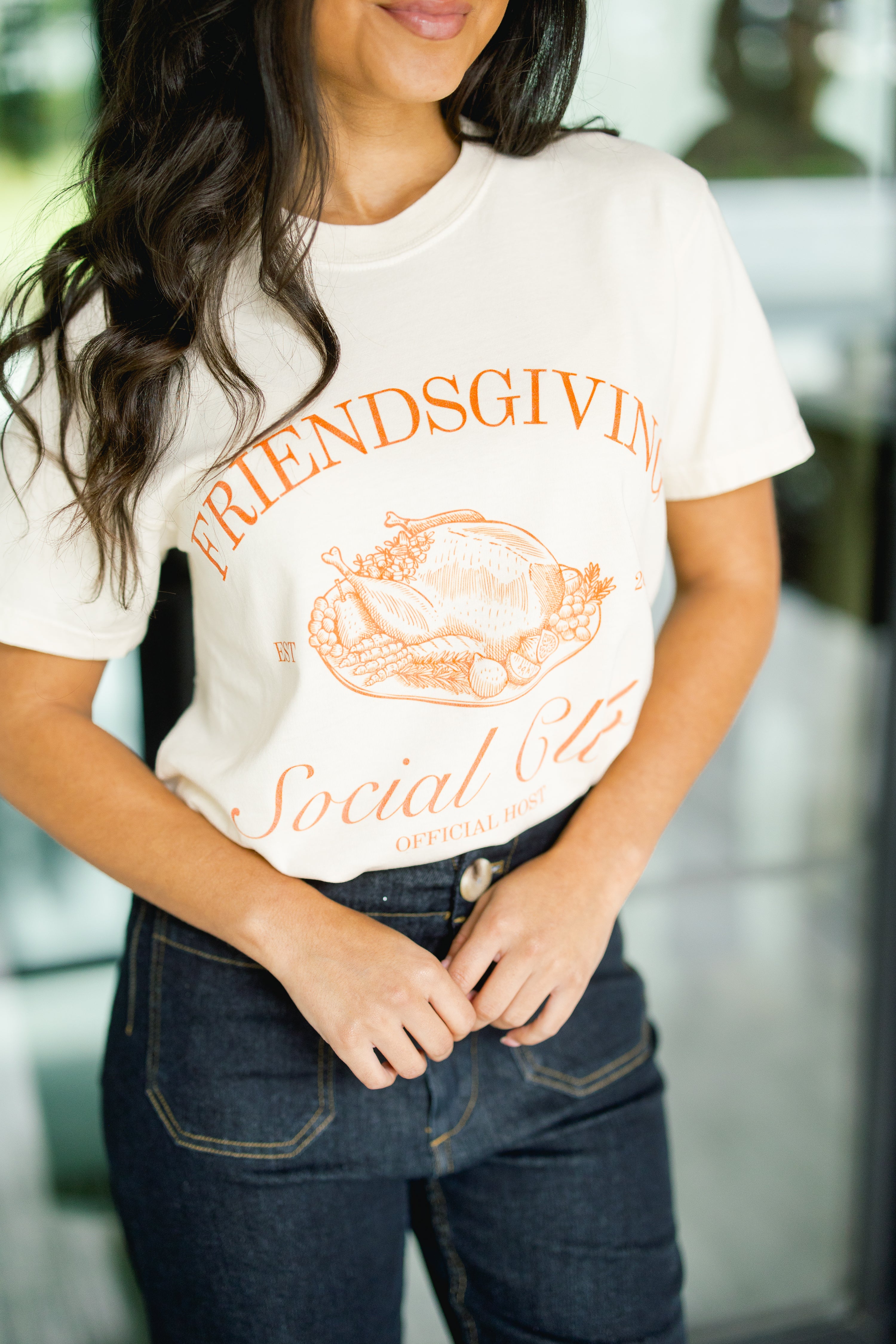 Join the club this Friendsgiving with our playful graphic tee! Show off your love for friends and fun with this quirky design. Perfect for any Friendsgiving celebration, this tee is sure to add a touch of humor and style to your festivities!