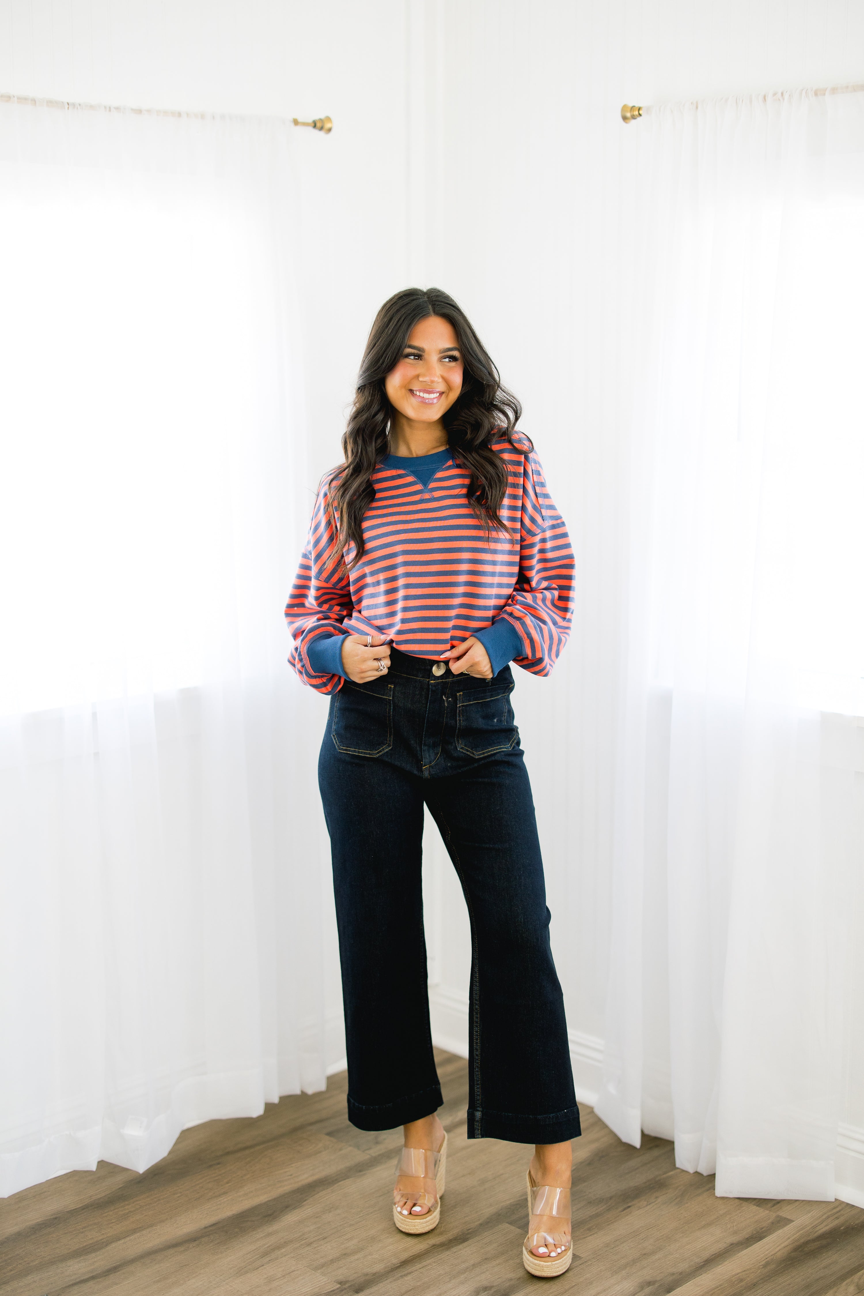 From crisp fall mornings to breezy spring afternoons, the Baylor Striped Pullover is your go-to for everyday comfort and timeless style!