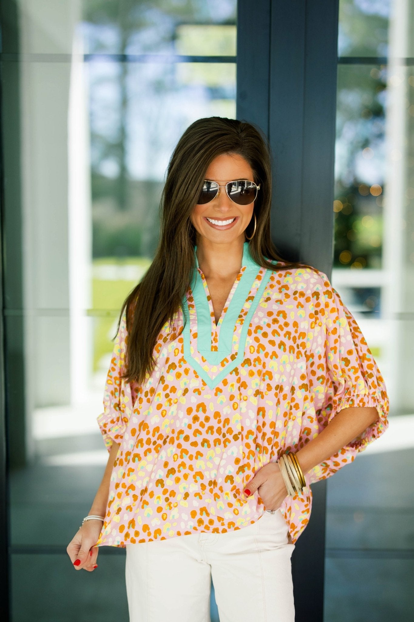 The Bold and Brilliant Printed Top is your go-to for instant outfit impact—fun, flattering, and effortlessly chic!!