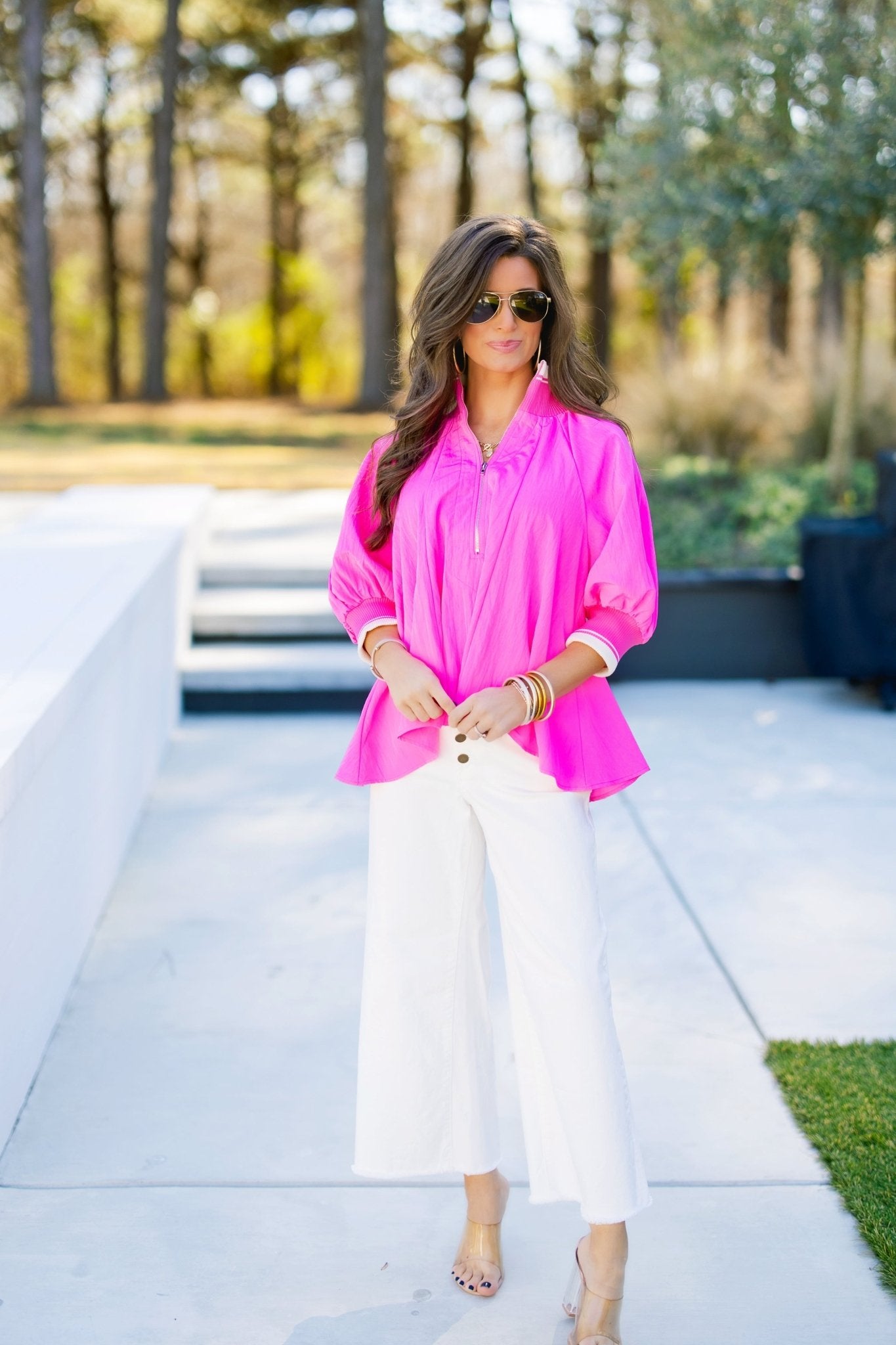 Bold, sporty, and effortlessly coolâthe Hold Out For More Hot Pink Top is made to stand out. This vibrant top features a chic half-zip neckline with a structured collar, balanced by soft volume in the puff sleeves for a feminine edge. The lightweight, textured fabric gives it an elevated feel while still keeping things comfortable and easy to wear.