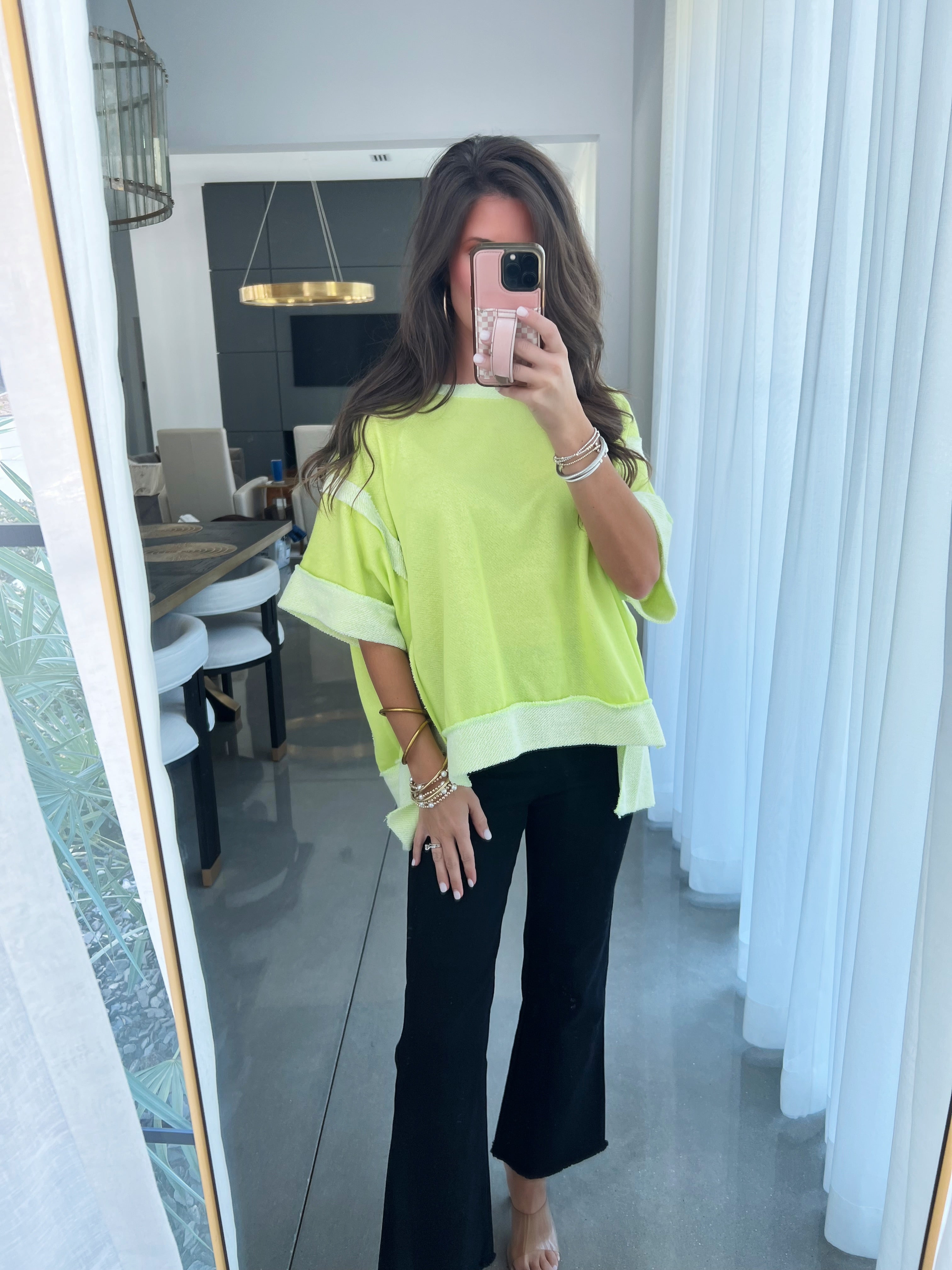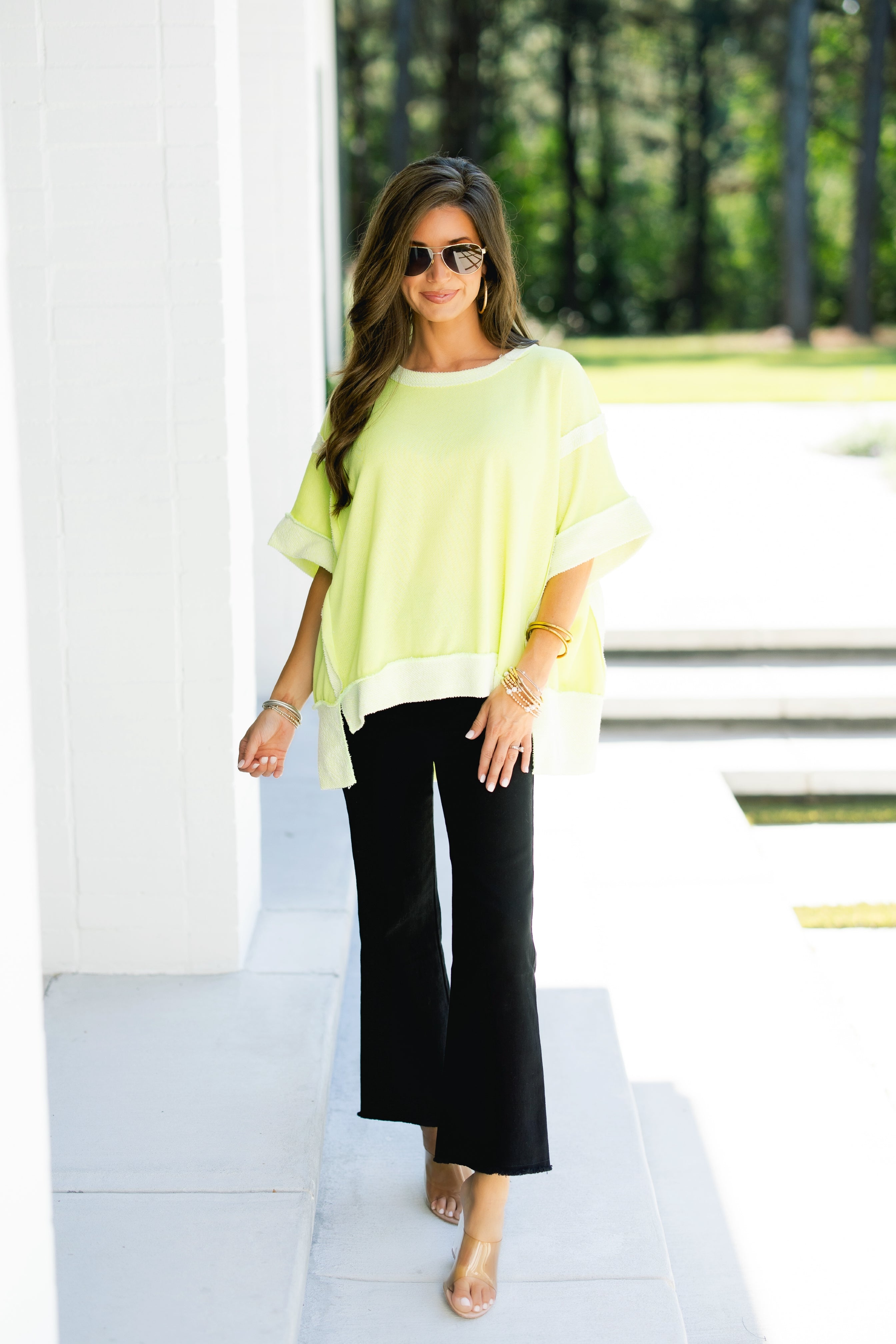 ✨ A fun and fresh top that’s as versatile as it is eye-catching—because sometimes, all you need is a little lime.