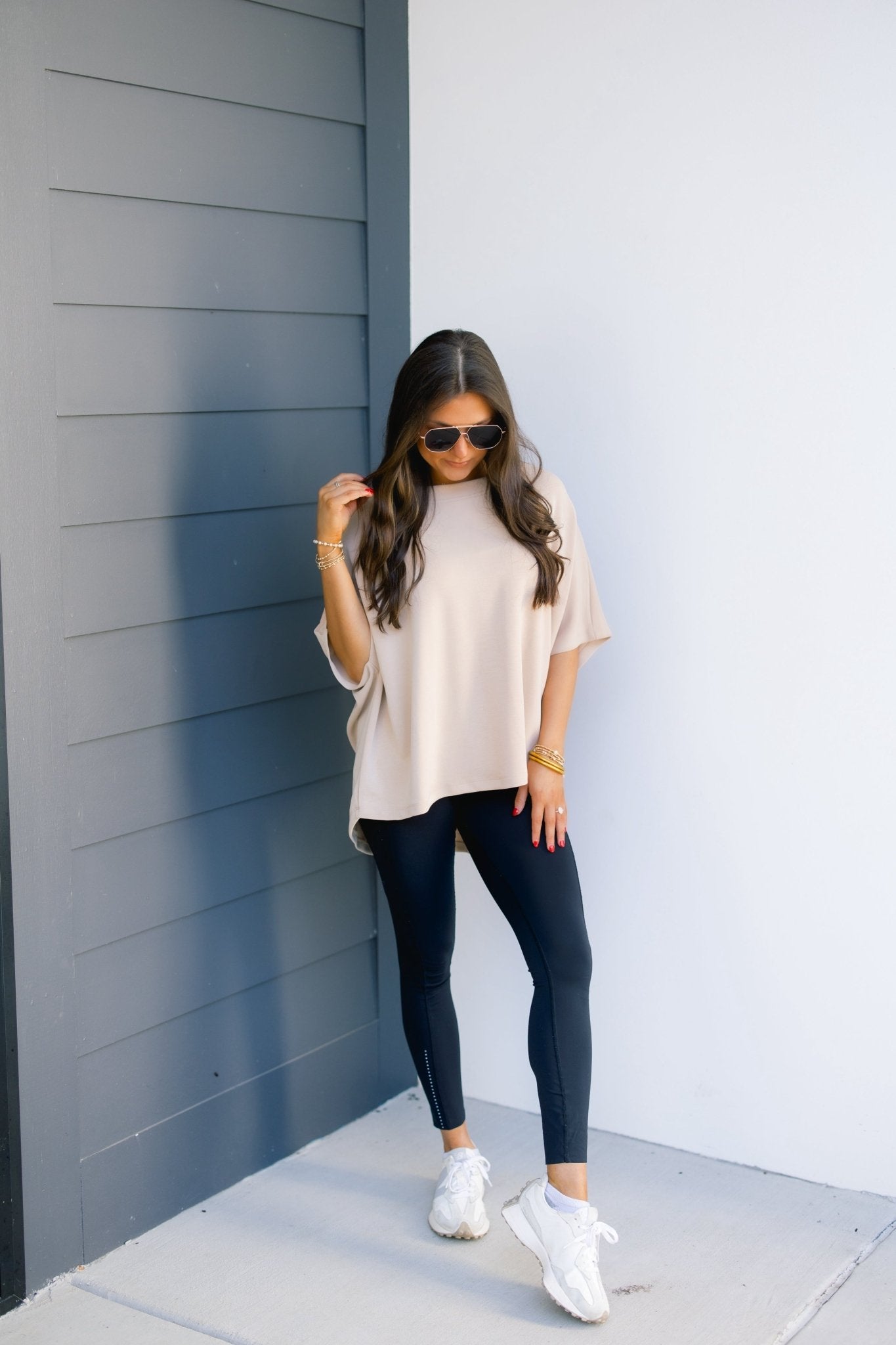 The neutral natural shade makes styling effortless, while the flowy fit gives you that easy, lived-in feel without sacrificing polish. Whether you’re headed to brunch, running errands, or dressing it up with accessories, this top keeps you looking chic and feeling comfortable! 47% Modal, 46% Polyester, 7% Spandex.