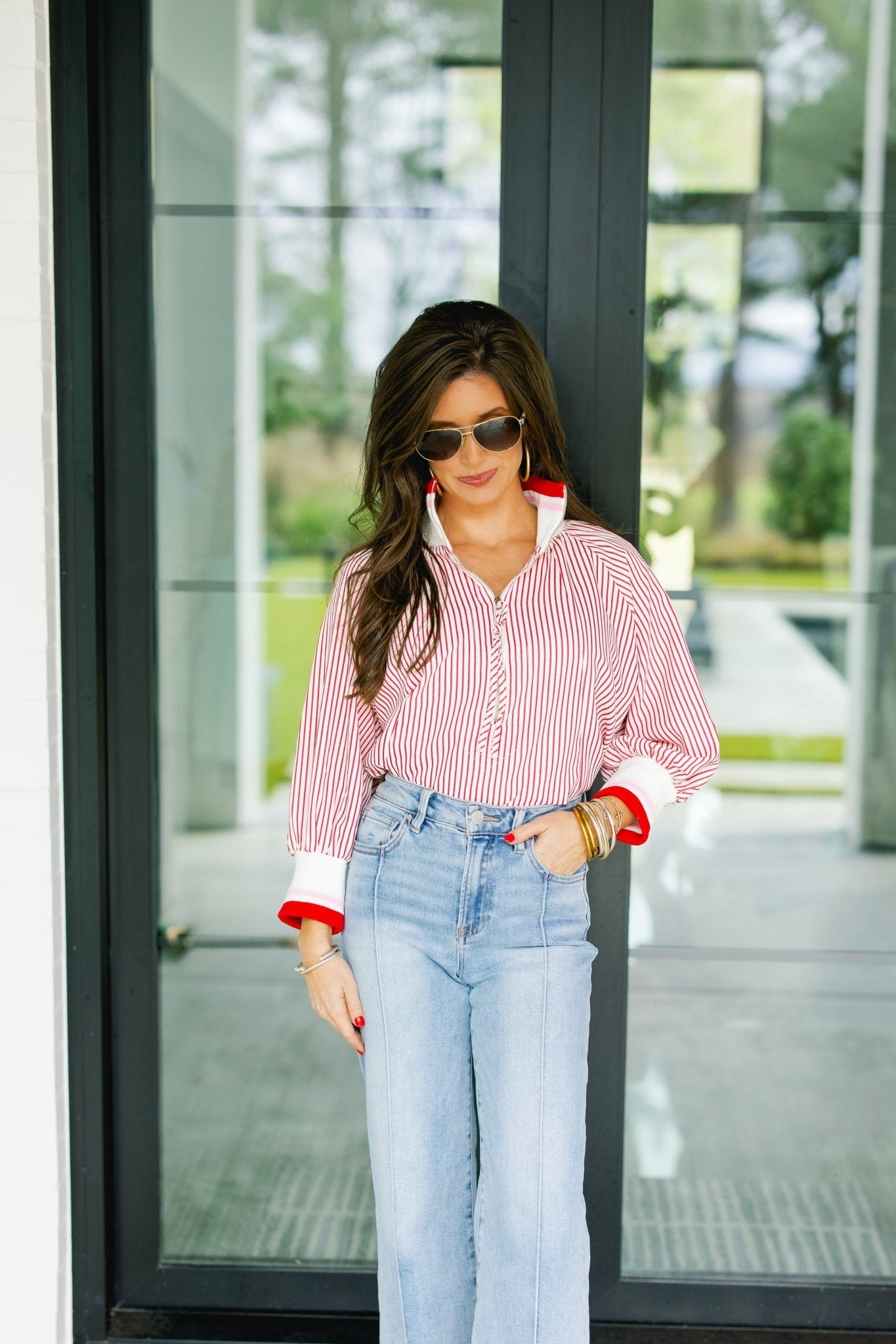 Turn up the charm in the Flirting With Fire Red Striped Top—a playful, eye-catching piece that blends sporty vibes with effortless everyday polish. Bold red pinstripes create a striking contrast against the crisp white base, while the half-zip neckline adds a modern, laid-back touch that’s easy to style, zipped up or slightly open.