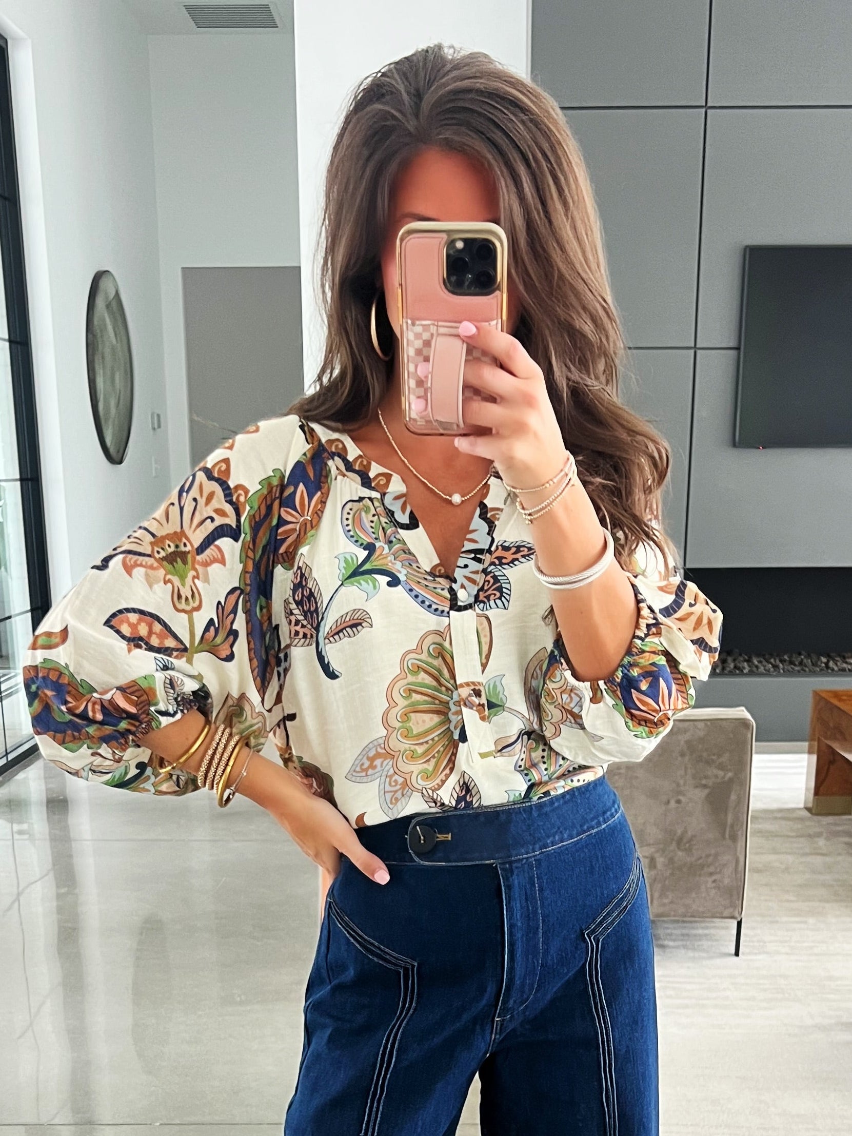 Autumn Muse Printed Blouse – Effortless Boho Chic