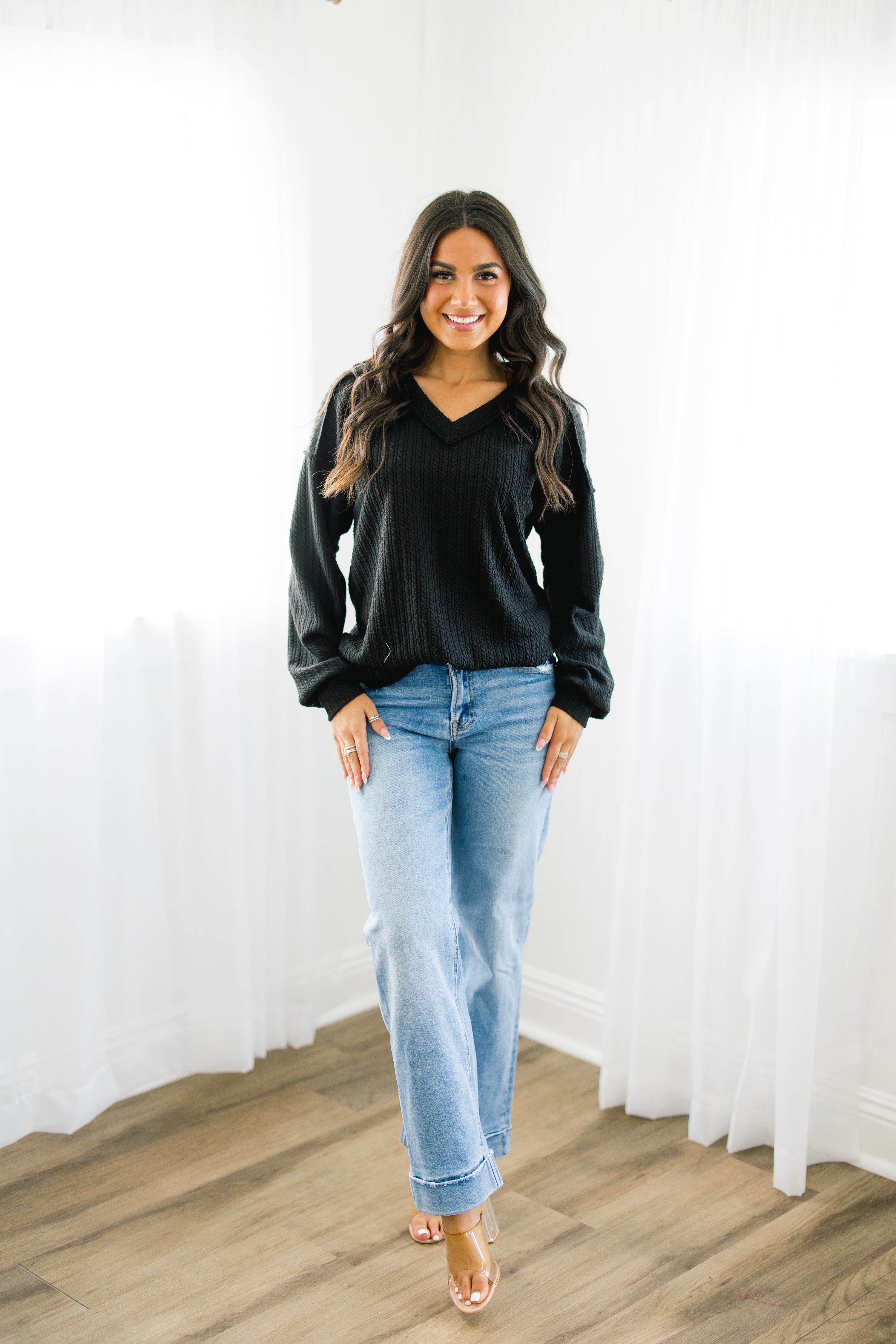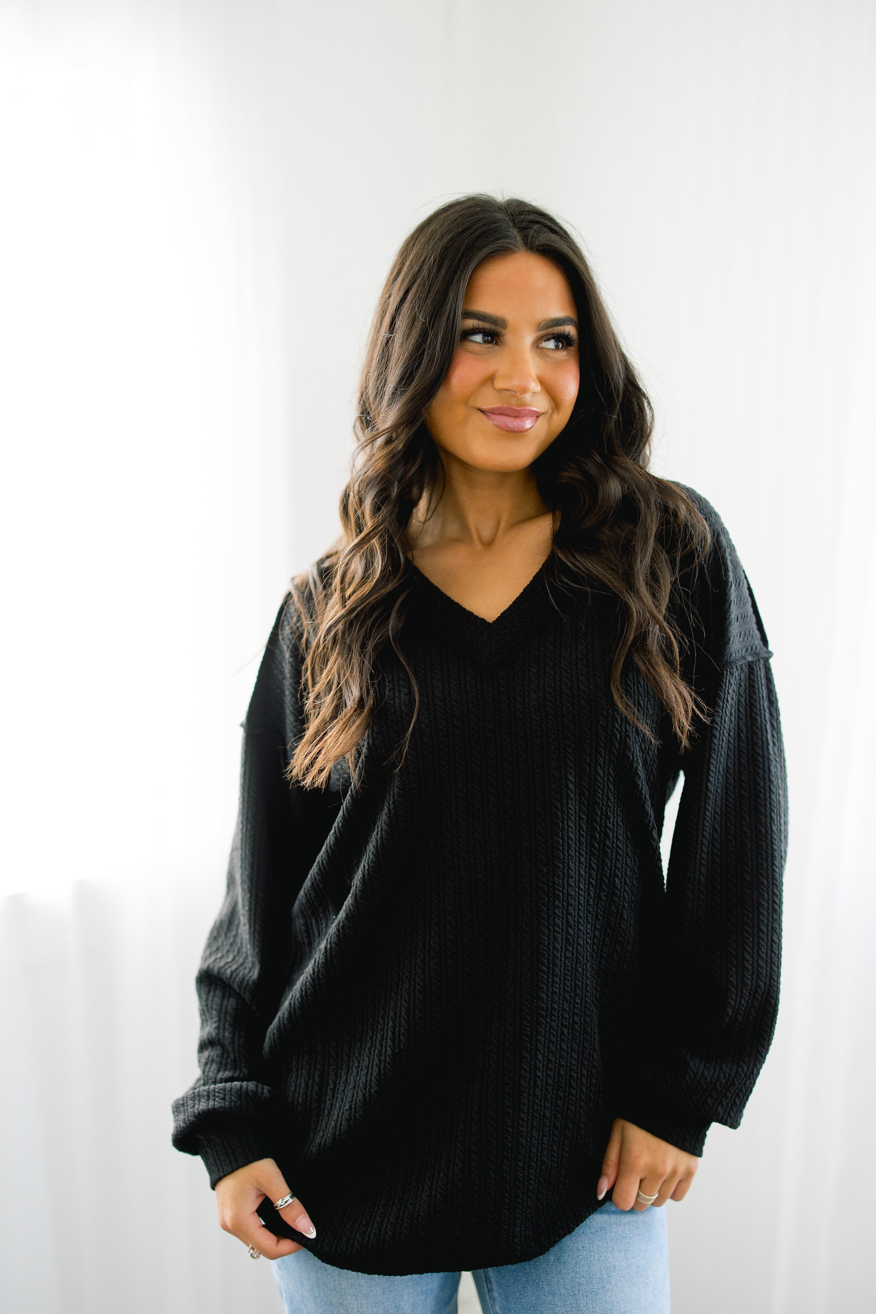 Basically Perfect Black Top – Women’s Textured V-Neck Everyday Essential – Instyle Boutique
