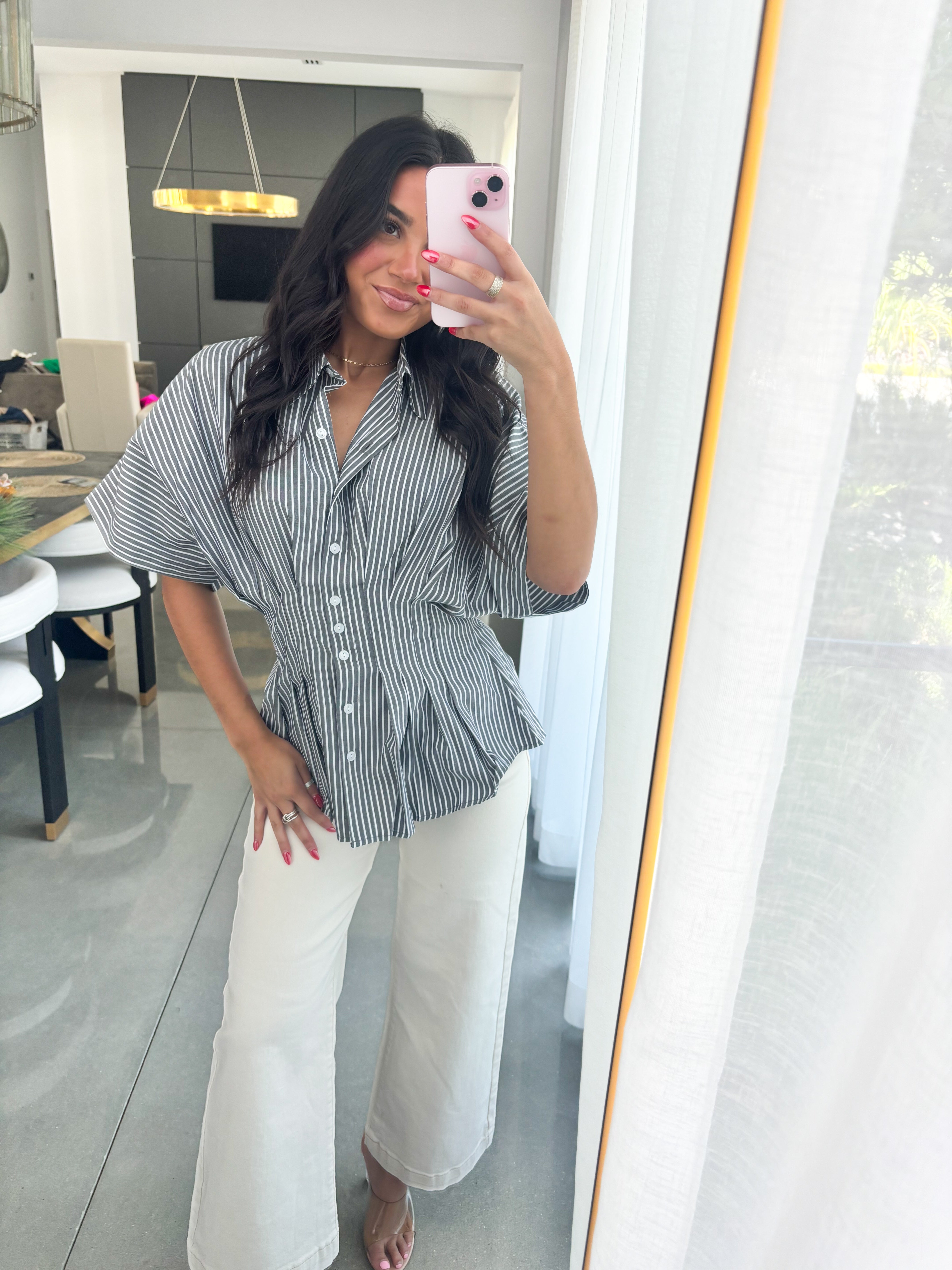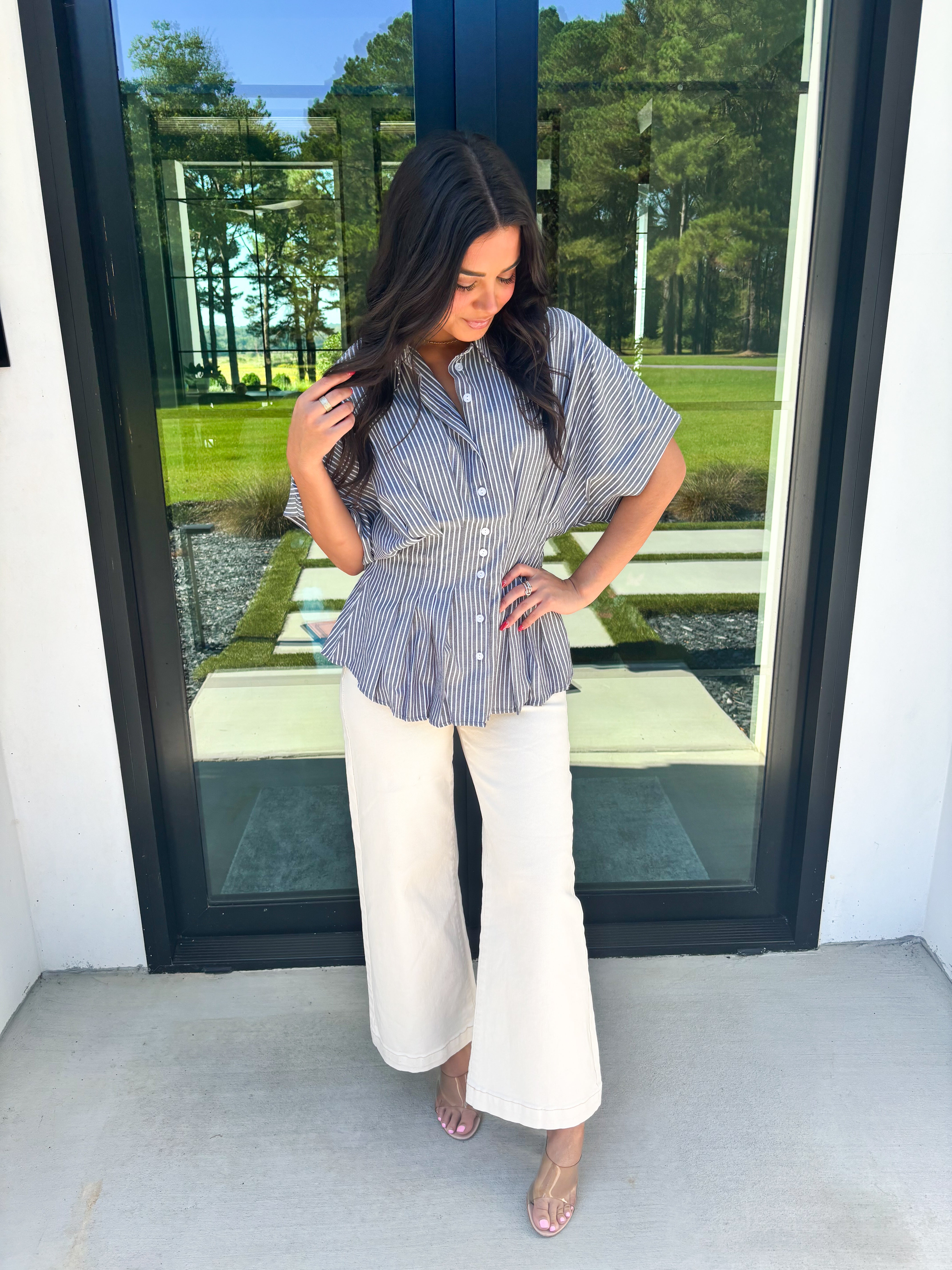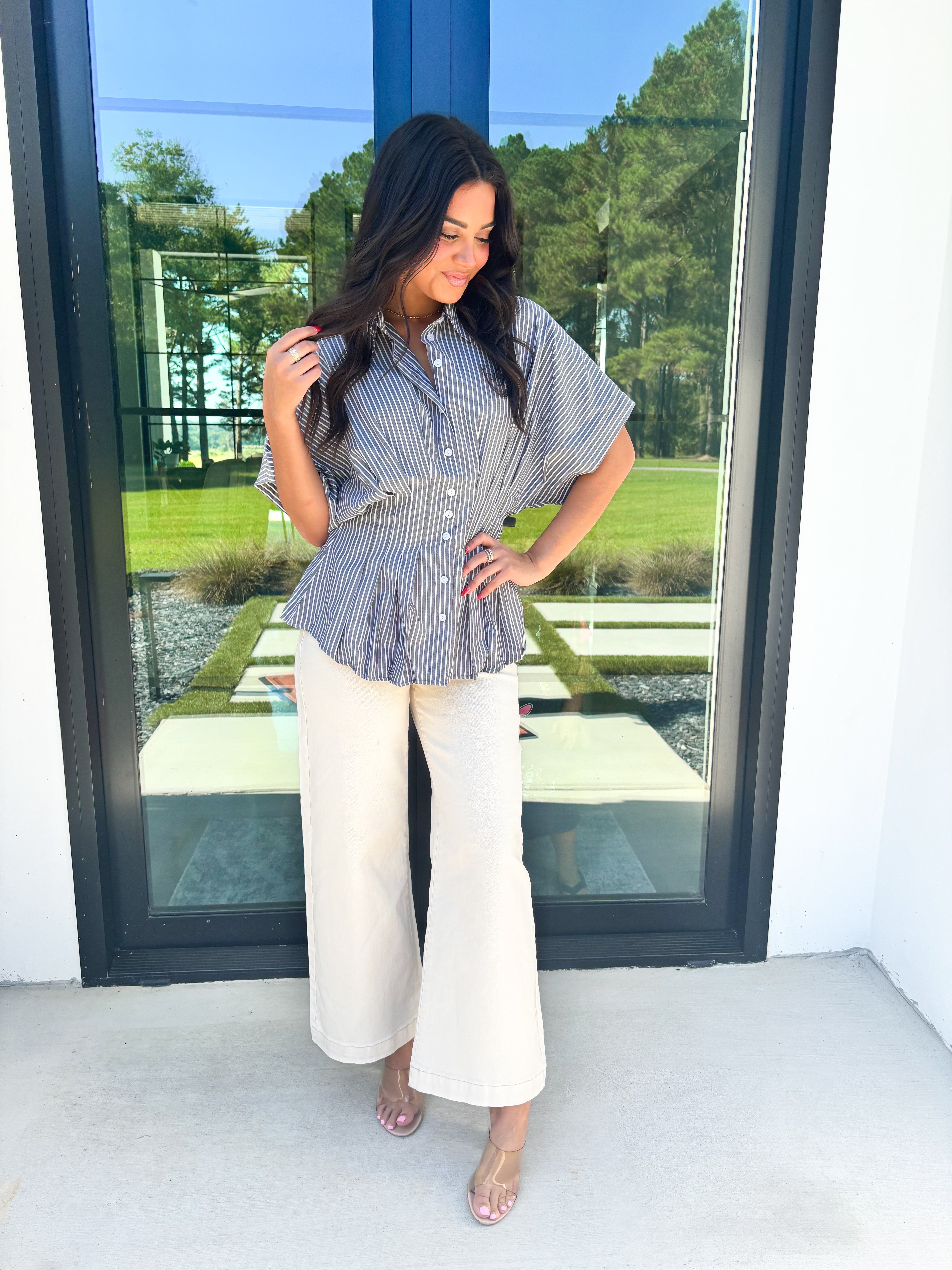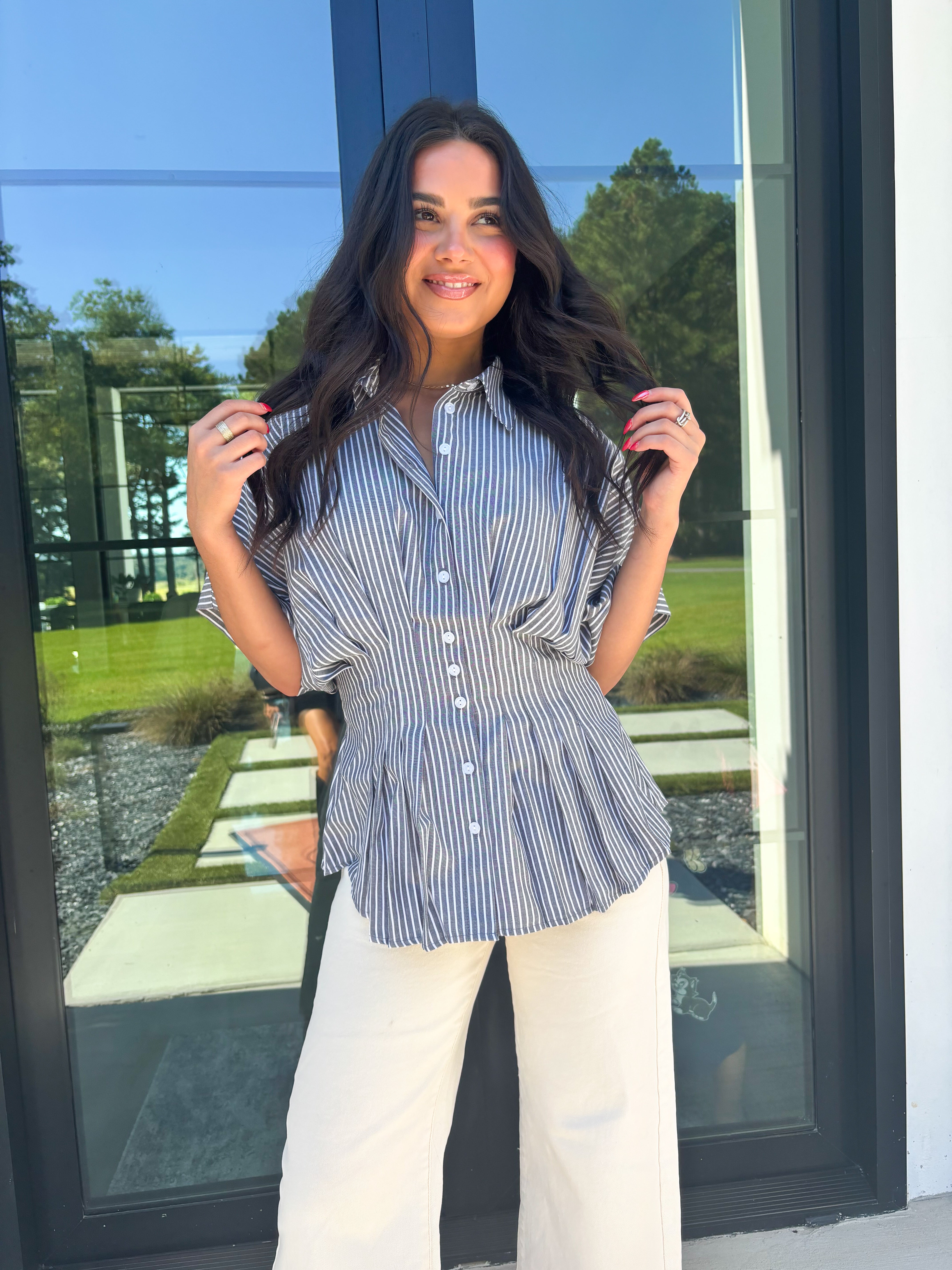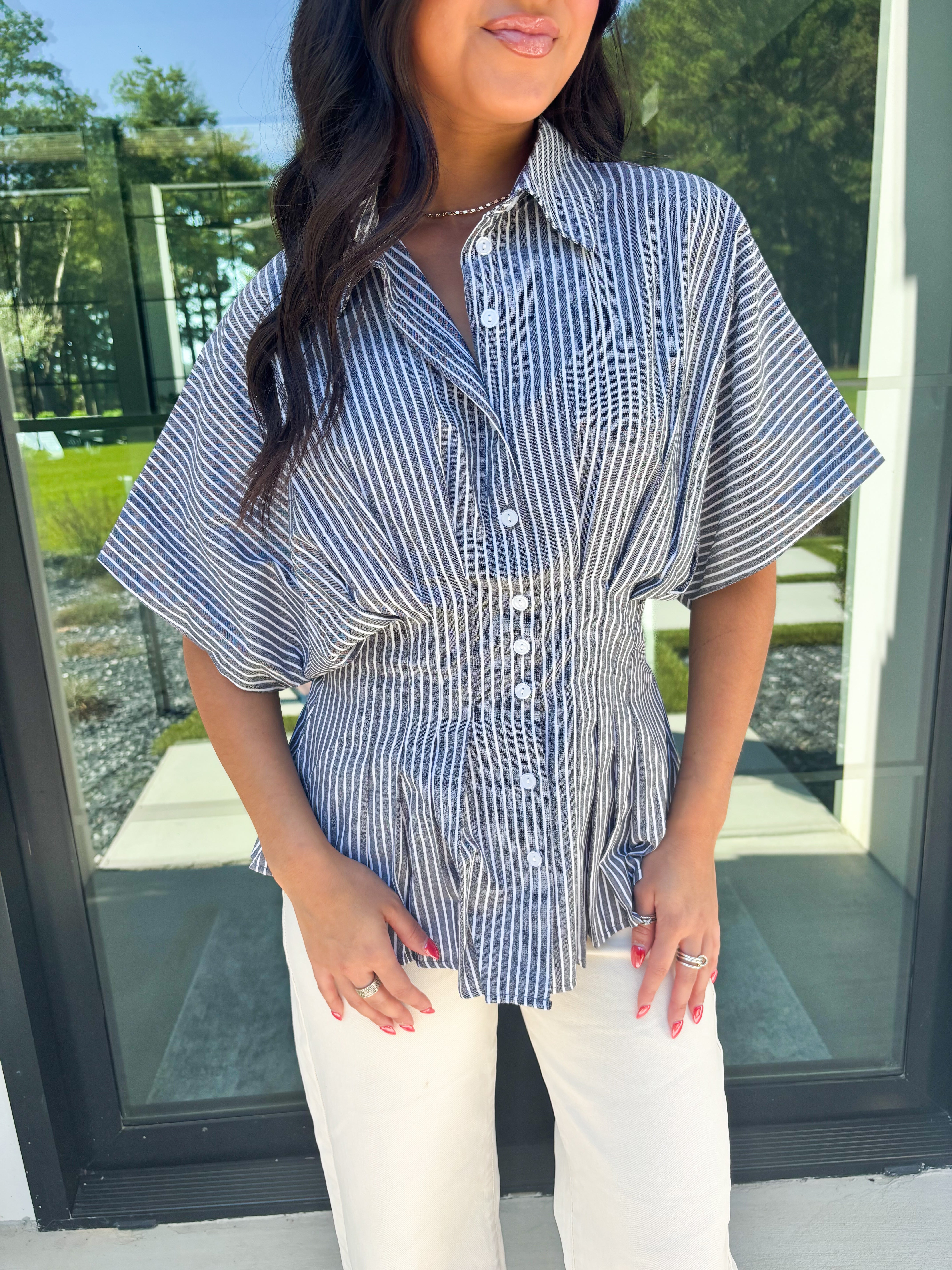 Better Together Button Down Top – Women’s Striped Cinched Waist Blouse – Instyle Boutique