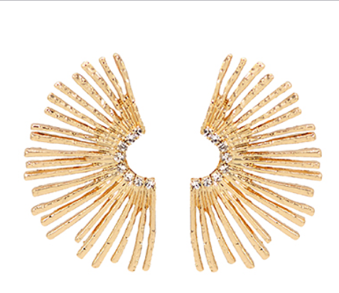 Elevate your ear game with these stunning golden fan earrings! Featuring an eye-catching geometric design, these beauties catch the light beautifully and add instant glamour to any look. Whether you're dressing up for a night out or adding flair to your everyday style, these fan-shaped stunners deliver major style points. Perfect for making a statement without saying a word!