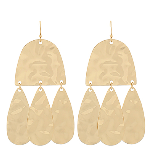Catch the light and turn heads with these stunning hammered gilded earrings. Each piece features a luxe gold finish with an artisanal textured surface that dances beautifully as you move. The elegant dangle design adds just the right amount of movement and personality to any outfit—whether you're dressing up for a night out or elevating your everyday style. Perfect for anyone who loves a touch of sparkle with serious sophistication.