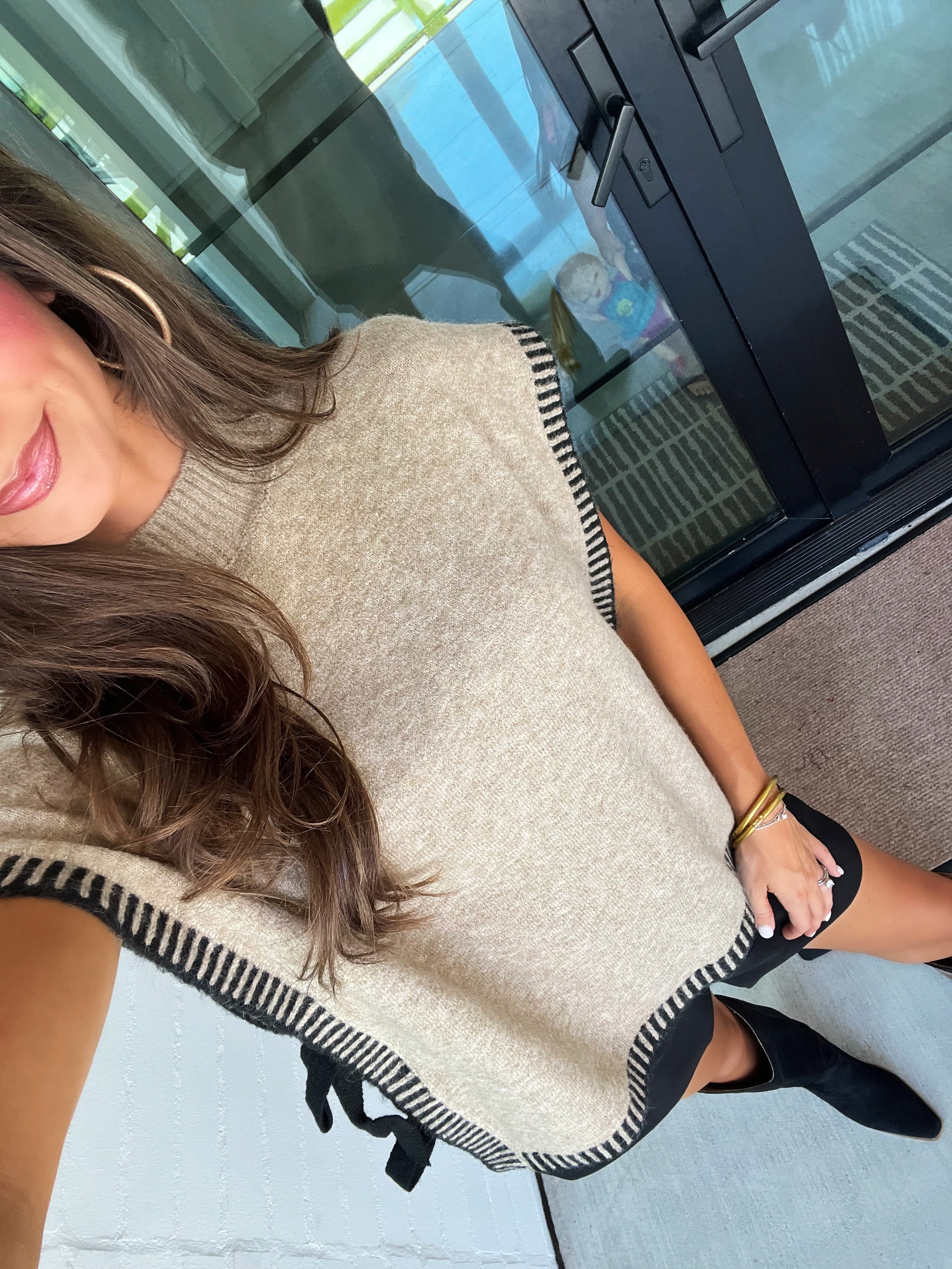 • Sleeveless poncho-style silhouette for versatile wear