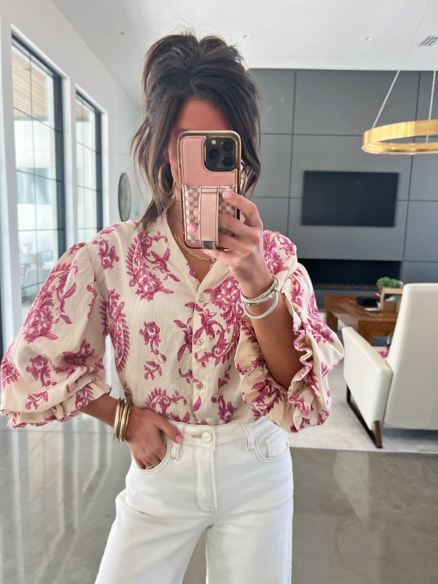 The Petal Pink Paisley Printed Top is an easy yes for customers looking for a flattering, wear-anywhere top that feels feminine, timeless, and effortlessly chic!